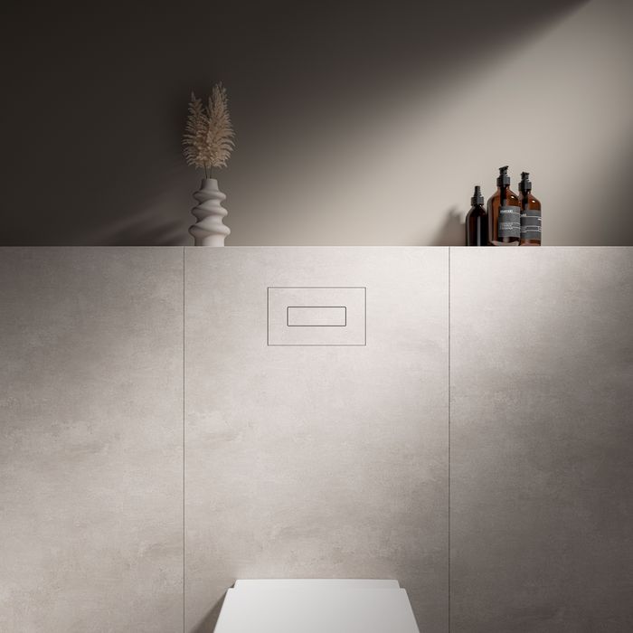 Wiele osób urządzających łazienkę marzy o całkowicie harmonijnej aranżacji, gdzie przycisk uruchamiający dosłownie wtapia się w ścianę nad miską WC. Viega spełnia te życzenia wprowadzając do oferty model, który można nie tylko idealnie zlicować z powierzchnią, ale również wypełnić ramkę montażową własnym materiałem – tym samym który pokrywa ścianę.