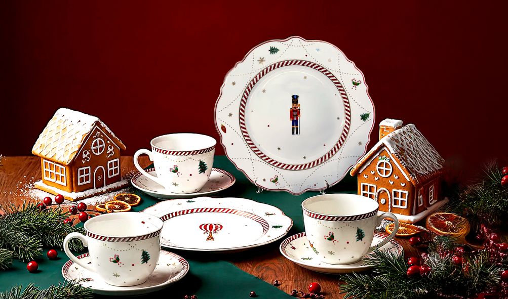 Produkty wykonane są z wysokiej jakości porcelany New Bone China – współczesnej wersji klasycznej porcelany kostnej, równie eleganckiej i delikatnie prześwitującej, lecz wytwarzanej wyłącznie z mineralnych składników. Dzięki temu jest lżejsza, trwała i idealna do codziennego użytku. W kolekcji znajdziemy kultowe kubki 400 ml, filiżanki ze spodkami, talerzyki i wiele innych elementów, które pozwalają stworzyć spójną aranżację świątecznego stołu – od śniadania po popołudniową kawę.